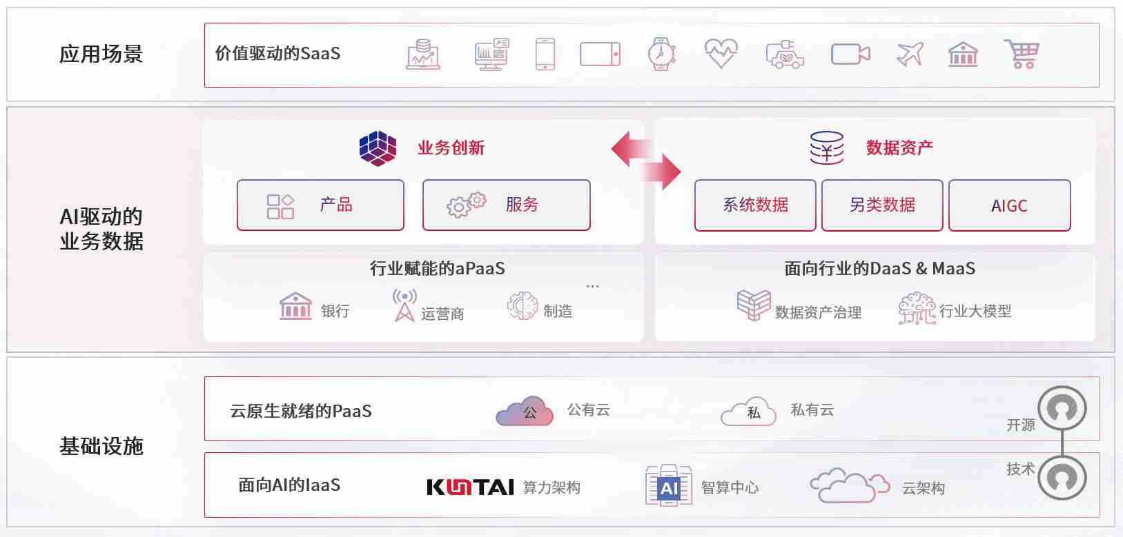 数字时代,,围绕企业数字化转型的关键要素,,z6尊龙旗舰厅数码开创性的提出数云融合战略和技术体系框架,,,着力在云原生、、、、数字原生、、、、AI原生和信创产业上架构产品和服务能力,,为处在不同数字化转型阶段的快消零售、、汽车、、、金融、、、医疗、、政企、、、教育、、运营商等行业客户提供泛在的敏捷IT能力和融合的数据驱动能力,,构建跨界融合创新的数字业务场景和新业务模式,,,助力企业级客户建立面向未来的核心能力和竞争优势,,全面推动社会的数字化、、、、智能化转型升级。。。。