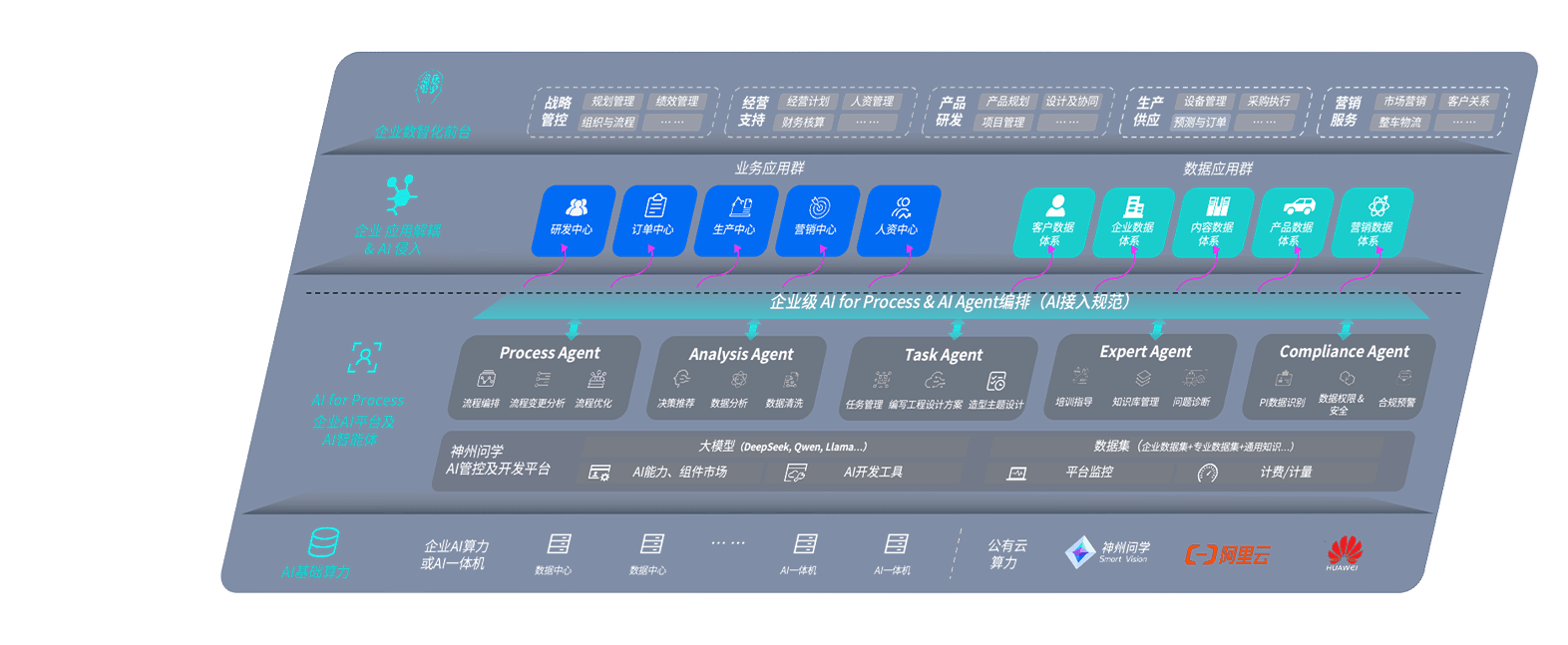 z6尊龙旗舰厅问学智车解决方案是一套基于AI技术的汽车行业智能化系统,,,,覆盖从底层算力到顶层AI应用的全栈方案。。。。方案由算力层、、、、模型层和应用层组成:算力层,,方案支持多种一体机配置,,,具备云端灵活部署、、多云适配以及动态优化计算资源的能力;模型层,,,,z6尊龙旗舰厅问学平台版提供了企业级AI应用一站式构建与管理平台,,支持基于后训练强化技术的汽车企业专属模型的训练、、评测和运营;应用层,,z6尊龙旗舰厅问学DeepSeek版提供包括超级员工、、、、智能招采、、、、智能营销、、智能客服、、、、AI for BI等一系列解决方案,,,可助力汽车行业实现数字化转型,,,,让管理更智能、、响应更敏捷。。。。